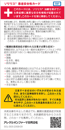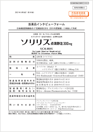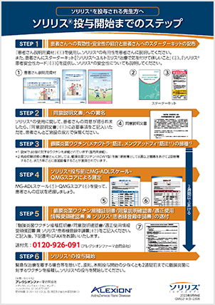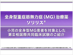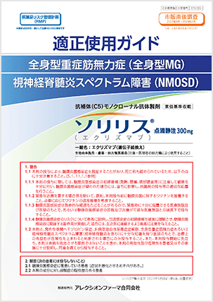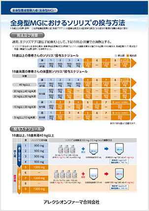 ※ソリリス®の効能又は効果(抜粋)は「全身型重症筋無力症(免疫グロブリン大量静注療法又は血液浄化療法による症状の管理が困難な場合に限る)」です。